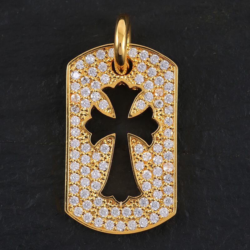 22KGP カットアウトクロスドッグタグ スモール パヴェ