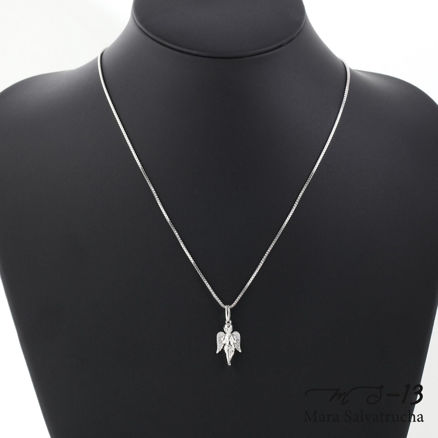 立体的に施したエンジェルモチーフのペンダントヘッド。しっかりとした装着感があります。